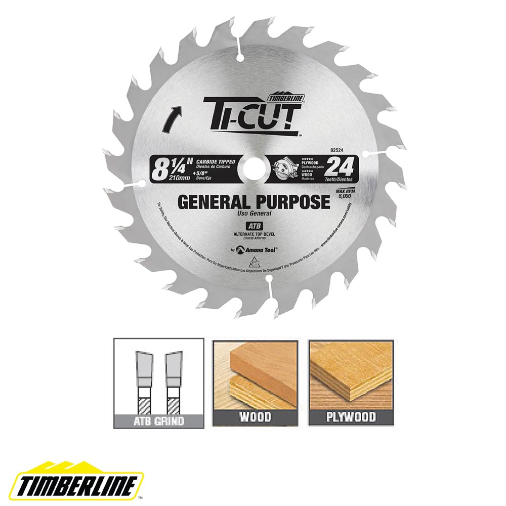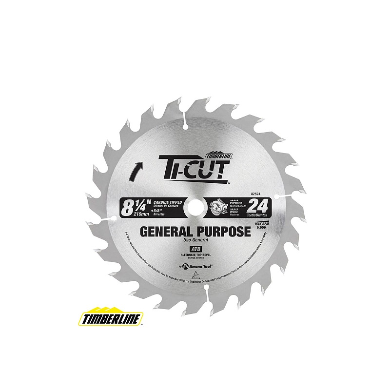 Disco Ti-Cut™ con punta de carburo para uso general y acabado, diámetro de 8-1/4 pulgadas x 24 dientes, ATB, 10 grados, orificio de 5/8 con perforación de diamante