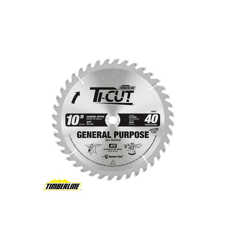 ØD: 10” Dientes: 40 Orificio de: 5/8” Ángulo de gancho: 18° Corte: 0,122″ (3,1 mm) Placa: 0,070″ (1,8 mm)
