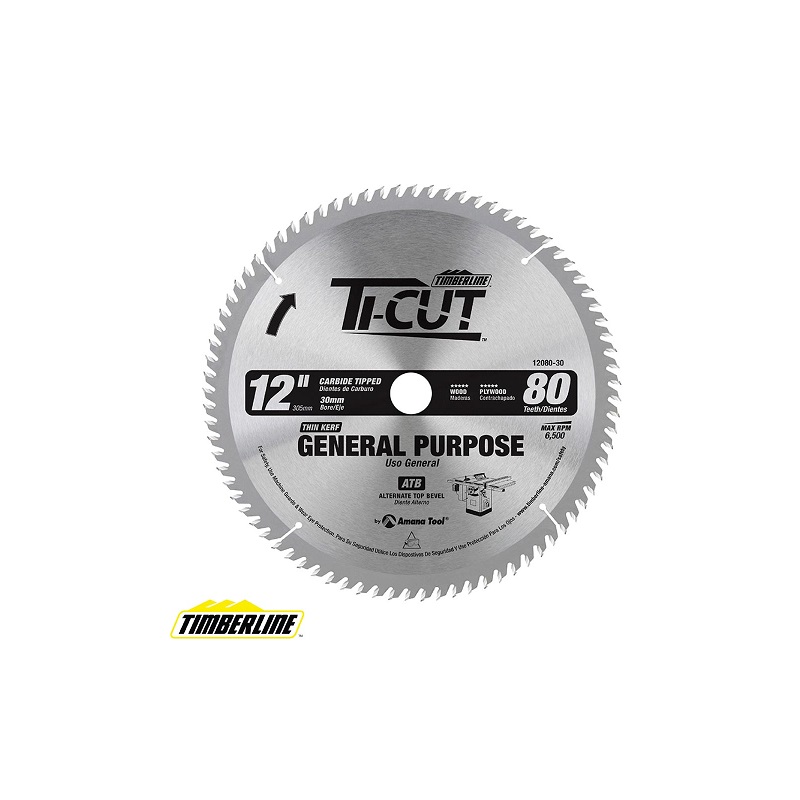 ØD: 12” Dientes: 80 Orificio de: 30 mm Ángulo de gancho: 10° Corte: 0,128″ (3,25 mm) Placa: 0,095″ (2,4 mm)