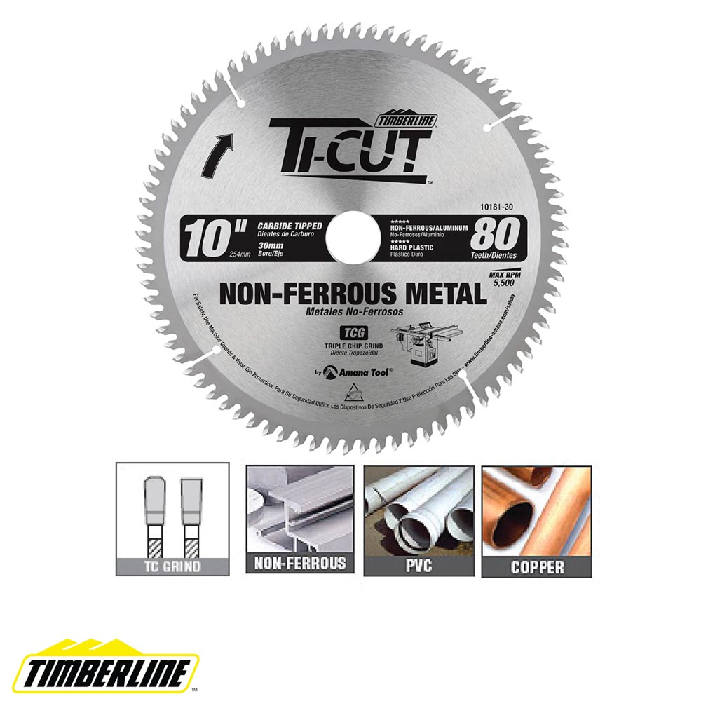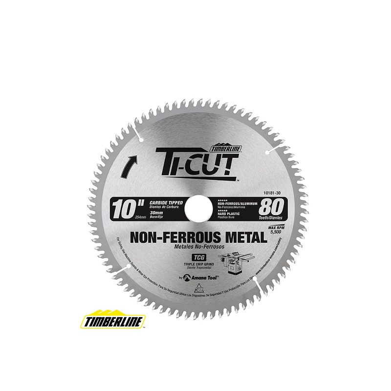 Disco Ti-Cut™ con punta de carburo para aluminio y metales no ferrosos, 10 pulgadas de diámetro x 80 dientes TCG, -5 grados, orificio de 30 mm
