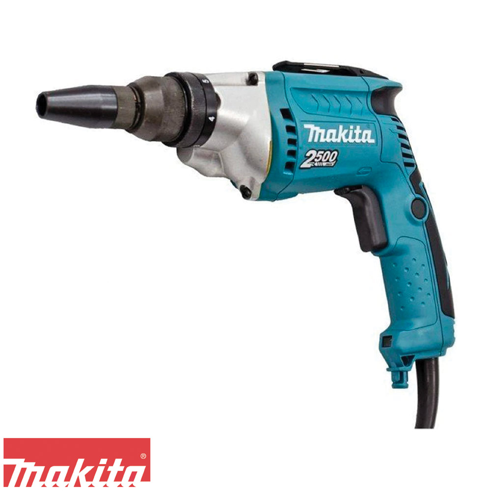 Potencia de entrada: 570W Zanco : 6.35mm (1/4″) Velocidad sin carga: 2,500 RPM Capacidad máx. tornillo autotaladrante: 6 mm Capacidad máx. tornillo Drywall: 5 mm Posiciones de par de apriete: 6 + 23 puntos Dimensiones (LxAxA): 301x70x207mm (11-7/8″x2-3/4″x8-1/8″) Peso Neto: 1,8kg (4,0lbs)
