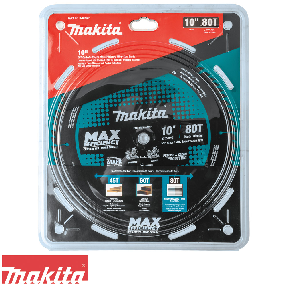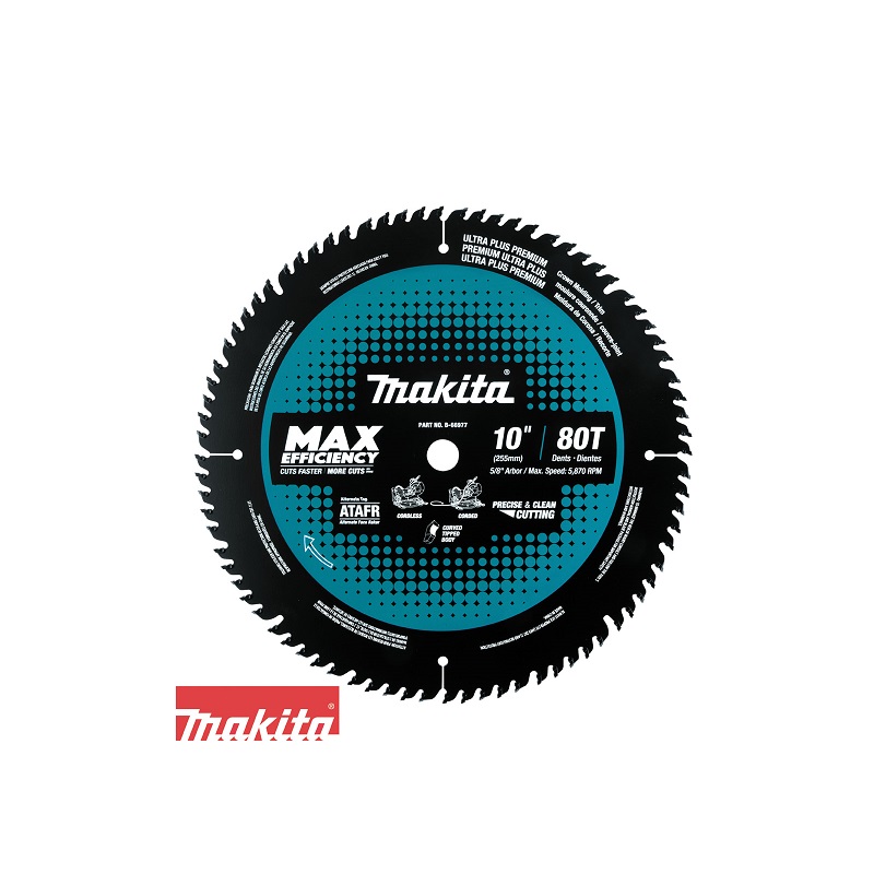 ESPECIFICACIONES Diámetro de la Hoja : 10″ Tipo (s) de Hoja/Navaja : Sierra de Inglete – Max Efficiency Tipo de Corte : Ángulo, Cruzado Material del Diente de la Hoja : carburo Aplicación (hojas para sierra) : Madera, Corte Transversal Fino, Uso General Número de Dientes : 80 Tamaño de Eje : 5/8″ Corte de Diente : ATAFR Ángulo de Gancho : 10° Grosor de la Placa : .065″ Corte : .085″ Velocidad Máxima (RPM) : 5,870 Compatibilidad con Herramienta : Sierra de Inglete