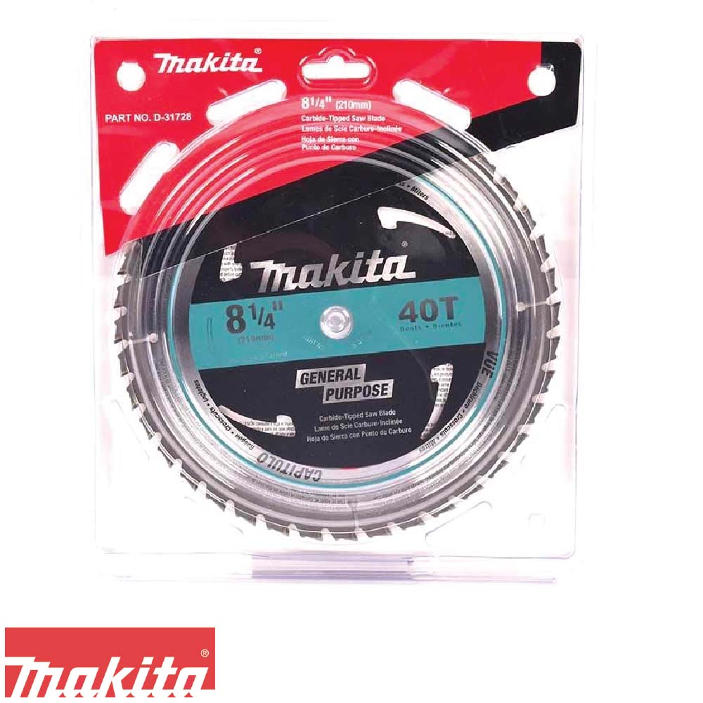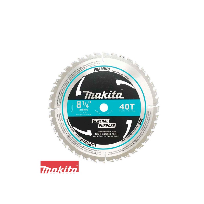 Disco Uso General Diámetro: 8.1/4″ Vástago: 5/8″ (16mm) Dientes: 40 Moler: ATB Angulo: 15 Grados Kerf: 0.078″ Velocidad Máxima: 5,700 RPM