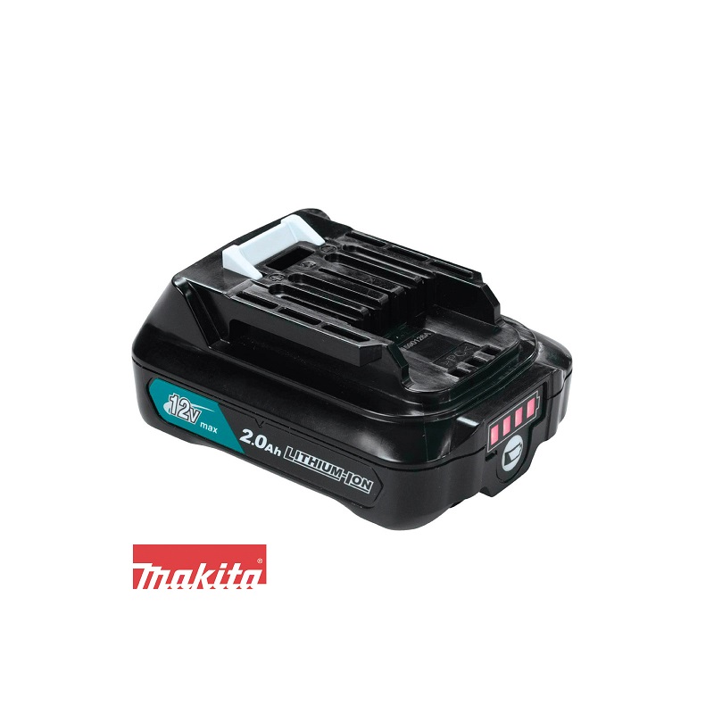 CARACTERISTICAS Tensión de la batería: 12Vmax Amperaje: 2.0 Ah Tipo de batería: CXT Las baterías de Litio-Ion entregan más tiempo de duración y menos auto-descargas Presenta un indicador L.E.D. de nivel de carga de la batería Diseño compacto para menos peso Parte de la serie en expansión de herramientas CXT® de 12V máx., combina rendimiento con ergonomía superior en tamaño compacto Utilizar solamente con cargadores Makita DC10WD y DC10SB