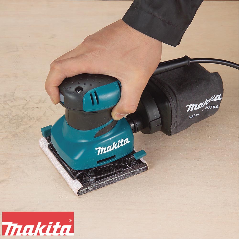 ESPECIFICACIONES TECNICAS Potencia de entrada: 200W Tamaño del respaldo: 112 x 102mm (4-3/8″ x 4″) Tamaño de la hoja de lija: 114 x 140mm (4-1/2″ x 5-1/2″) Orbitas por minuto : 14.000opm Dimensiones (L x A x A): 131x112x141mm (5-1/8″x4-3/8″x5-9/16″) Peso neto: 1,2kg (2,6lbs) Cordón eléctrico: 2.0m(6.6ft.)