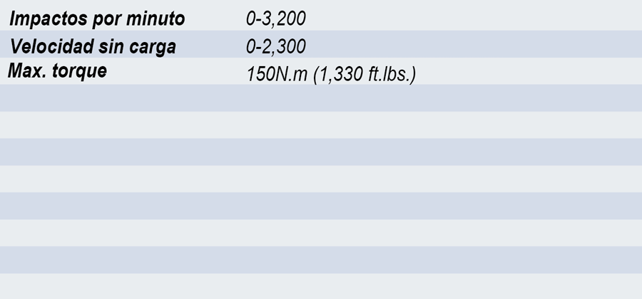- Su motor proporciona 2,300rpm y 3,200ipm para mayor potencia en trabajos difíciles.