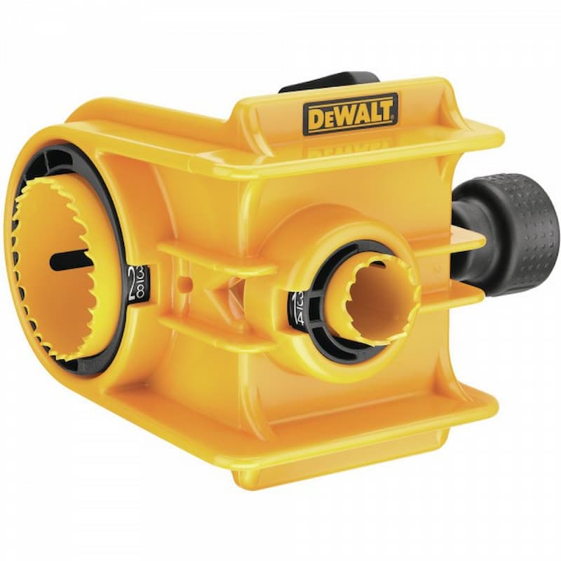 - Incluye: 1 Broca sierra de 1 Pulg, 1 Broca sierra de 2-1/8 PULG, mandril, adaptador, guía de taladro, piezas de repuesto (incluyendo dos puntas centradoras de punto piloto adicionales), dos arbustos ajustables que aceptan tanto los backsets estándar como los dos espesores comunes de la puerta, y nuevos mandriles de cambio rápido (DW1803 y DW1810) para una mayor productividad del usuario