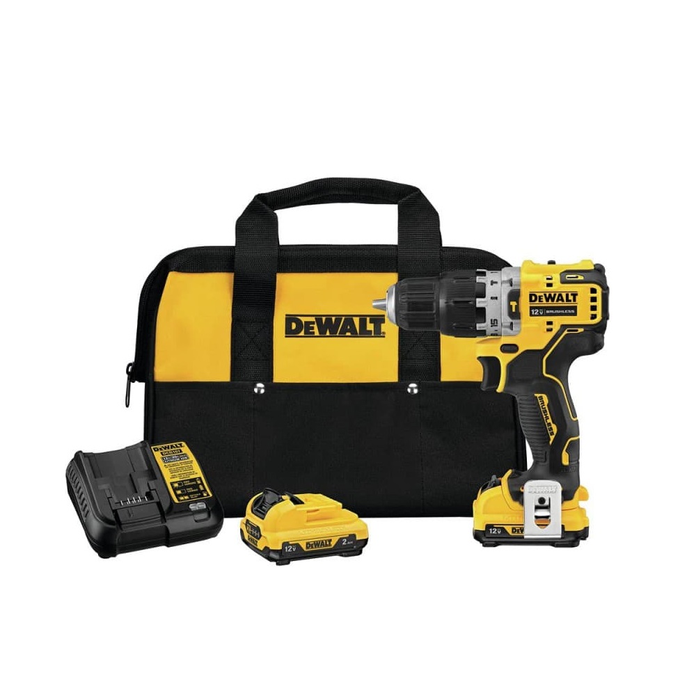 DCD706F2 – BARRENO TALADRO PERCUTOR INALAMBRICO DE 12 VOLTIOS, MANDRIL 3/8, MOTOR BRUSHLESS, 2 BATERIAS Y CARGADOR. DEWALT
