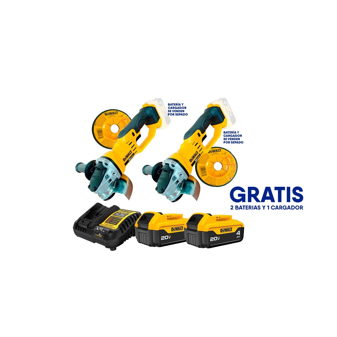 2 UNIDADES DEL CODIGO DCB204YY-FOC, PRODUCTO GRATIS. BATERIA 20 VOLTIOS, DE LITIO, 4 AMPERIOS HORA. DEWALT