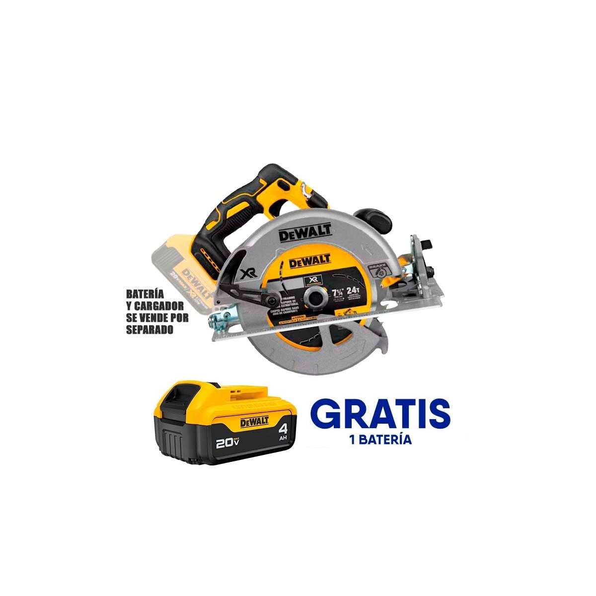 CODIGO DCS570B, SIERRA CIRCULAR INALAMBRICA 7 1/4 PLG, 20V, 5,500 RPM, BRUSHLESS, GRATIS BATERIA, (BARE TOOL). DEWALT