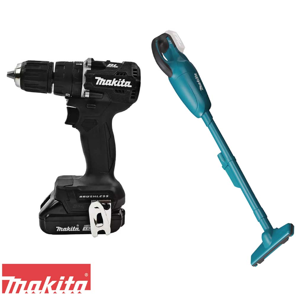 INCLUYE 1 Rotomartillo 18V Brushless Makita DHP487 2 Baterías Makita 18V BL1815N. 1 Cargador DC18SD. 1 Clip para cinturón. 1 Aspiradora DCL180Z