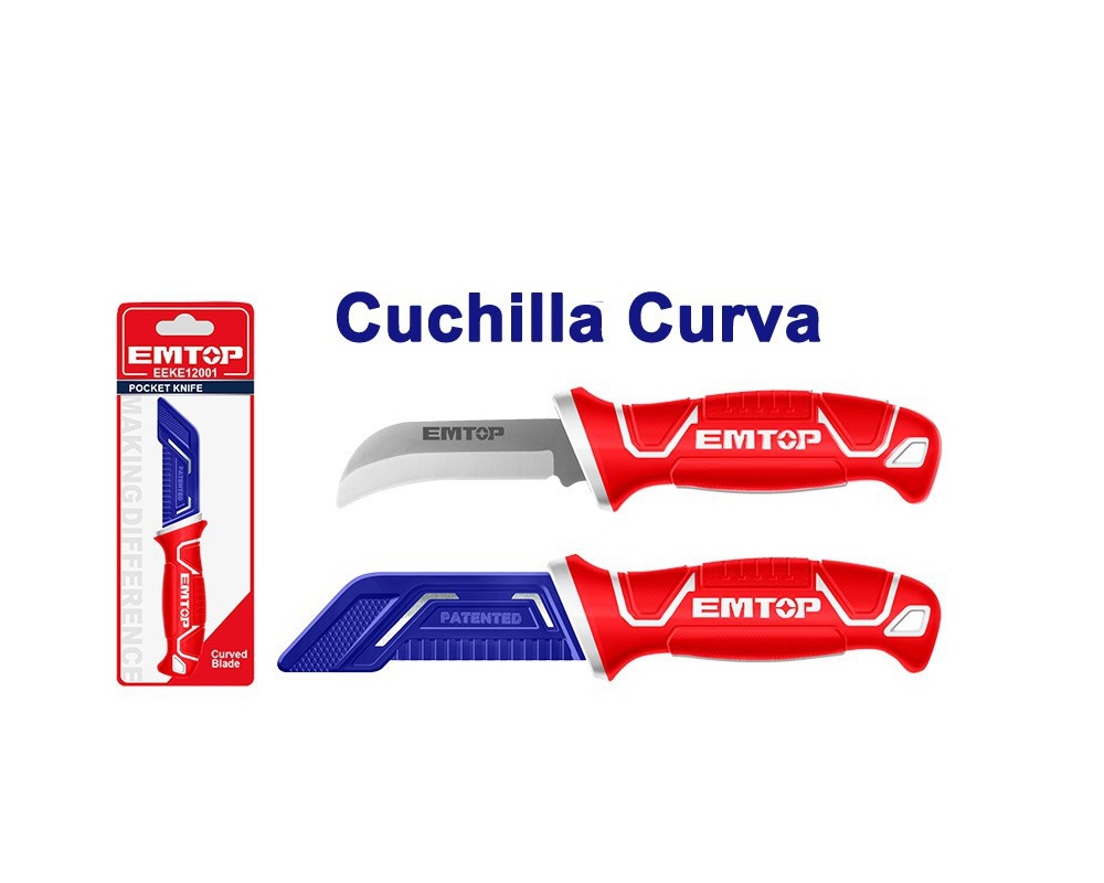 EEKE12001 – CUCHILLO DE BOLSILLO, HOJA CURVA, 8 PULG, ACERO INOXIDABLE, FUNDA PROTECTORA. MARCA EMTOP