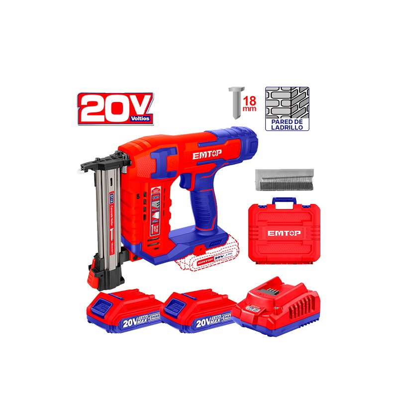 - CODIGO ELSTLI3805, CLAVADORA INALAMBRICA 20V, USO EN CONCRETO, LADRILLO, LAMINA DE 1MM Y MADERA, SIN BATERIA NI CARGADOR, BARE TOOL. EMTOP