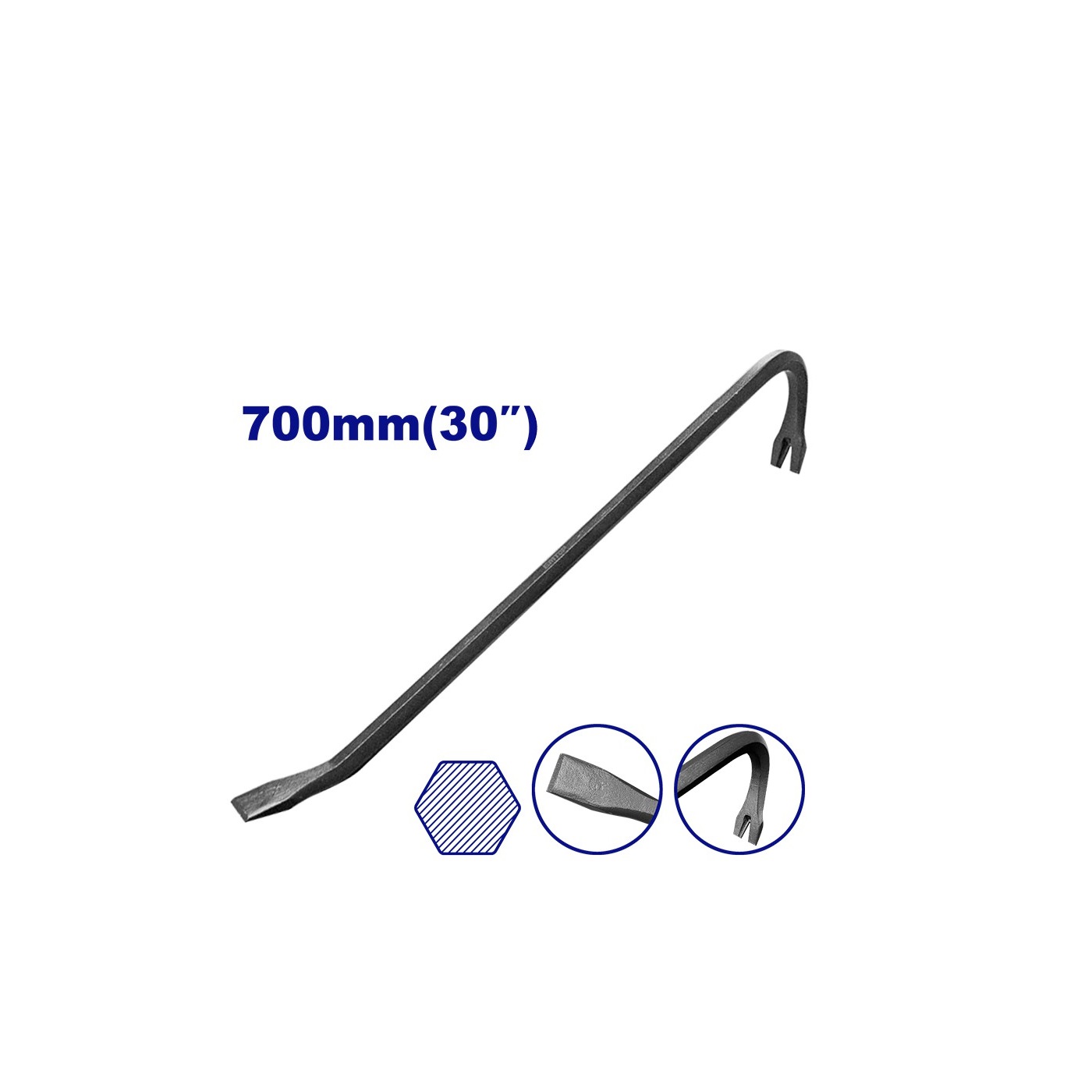 Con un mango de 18 mm de grosor, ofrece un agarre firme y mayor control al aplicar fuerza. Su diseño curvo en los extremos permite realizar tareas como levantar, separar, apalancar o remover clavos con facilidad y precisión.