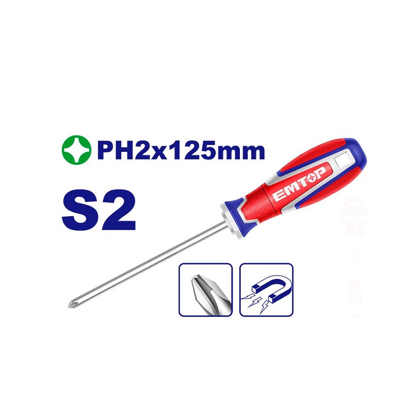 El Destornillador Phillips EMTOP con Punta Magnética PH2 está diseñado para ofrecer precisión, durabilidad y comodidad en tareas de atornillado. Su punta magnética PH2 permite una sujeción firme del tornillo, facilitando el trabajo y evitando deslizamientos. Fabricado con acero S2, garantiza resistencia y una larga vida útil. Con una hoja de 5 pulgadas, es ideal para uso general tanto en el hogar como en el entorno profesional.
