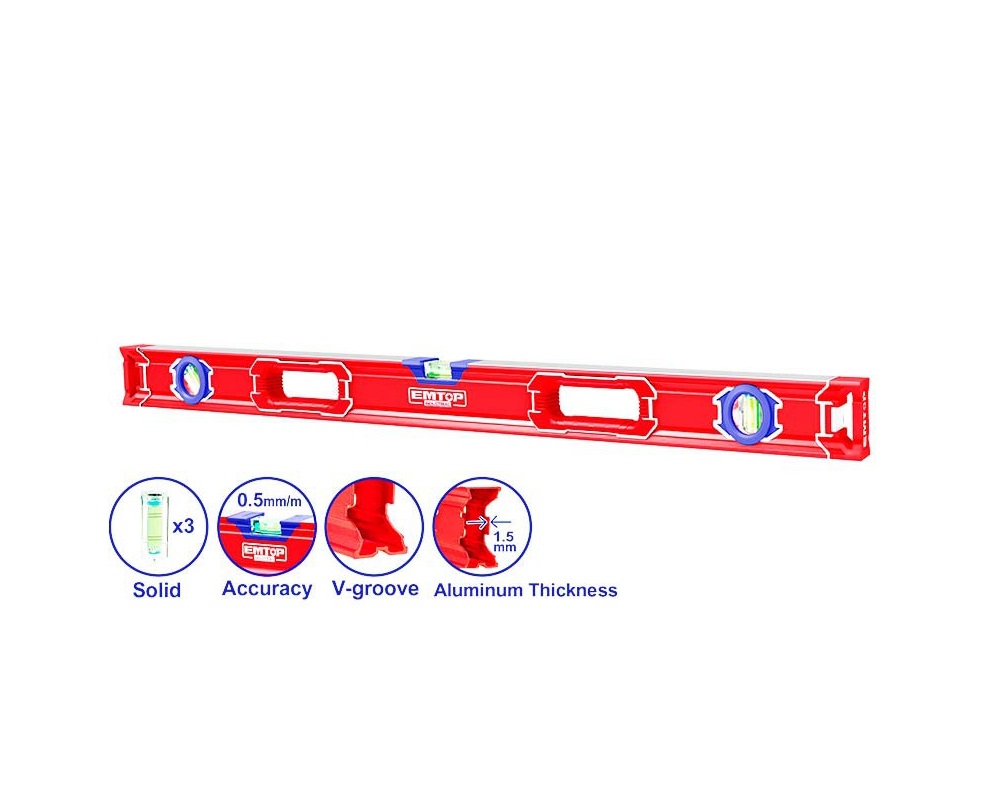 ESLL28001 – NIVEL DE 80 CENTIMETROS, RANURA EN V PARA MEDIR OBJETOS O SUPERFICIES REDONDAS. MARCA EMTOP