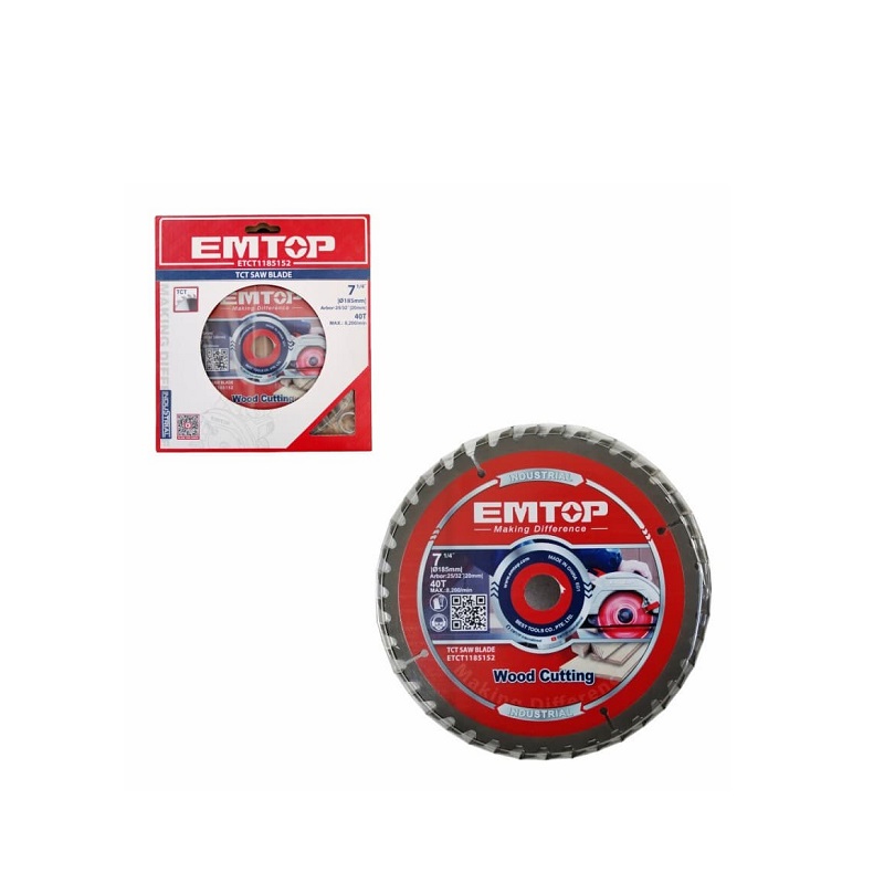 ETCT1185152 – DISCO DE SIERRA, 7-1/4, EJE DE 20 MM CON REDUCTOR A 16 MM, 40 DIENTES DE CARBURO, PARA MADERA. MARCA EMTOP