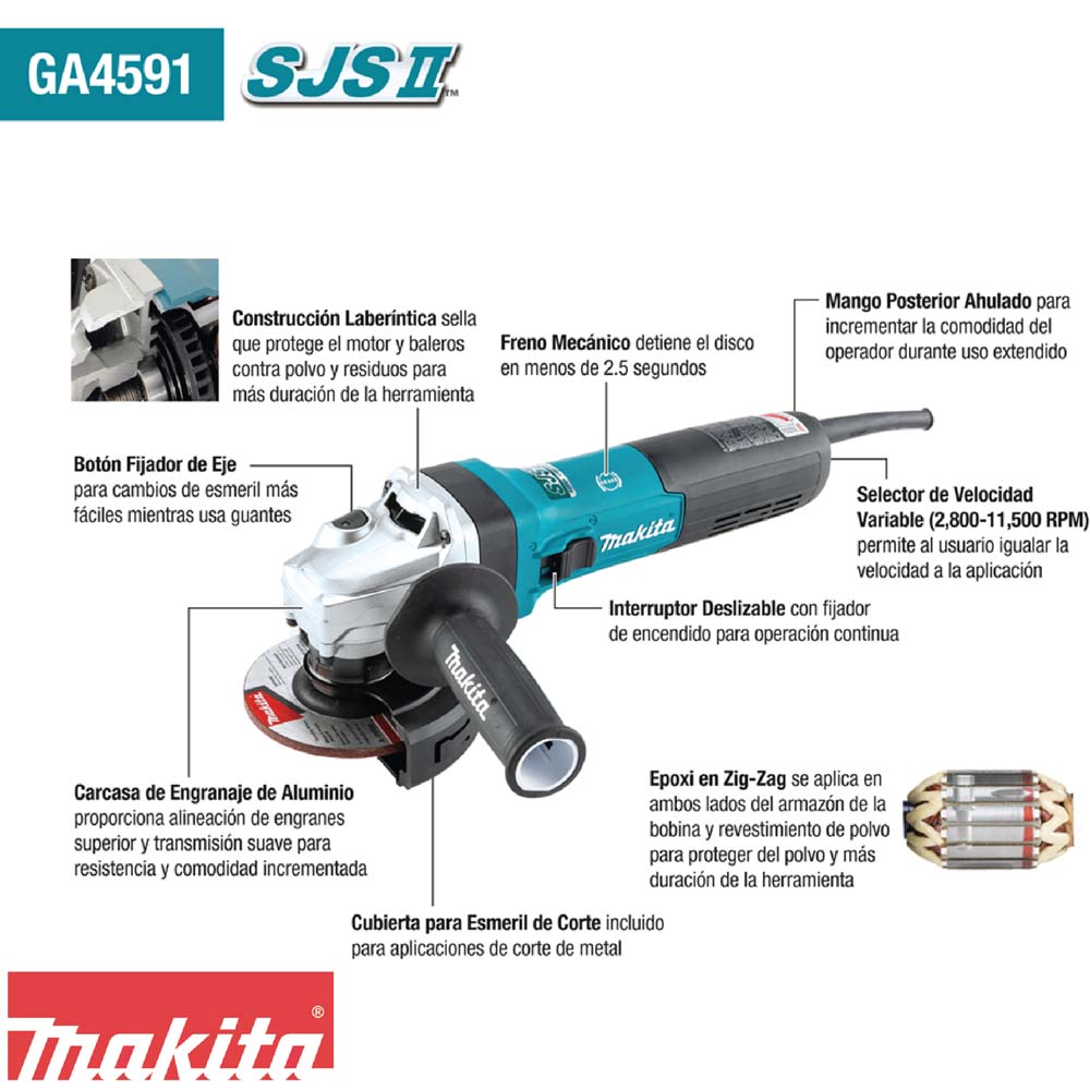 Esmeriladora Angular de 4‑1/2″ SJS™II con Alta Potencia c/Freno