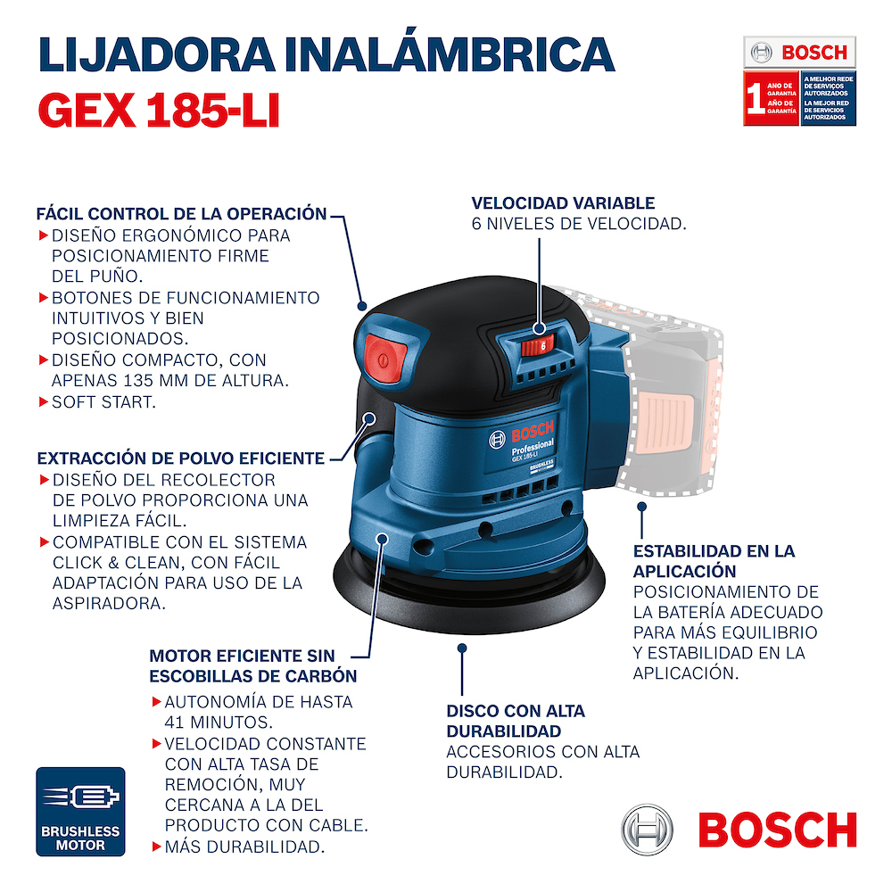 GEX 185-LI – Lijadora Excéntrica BOSCH / 5″