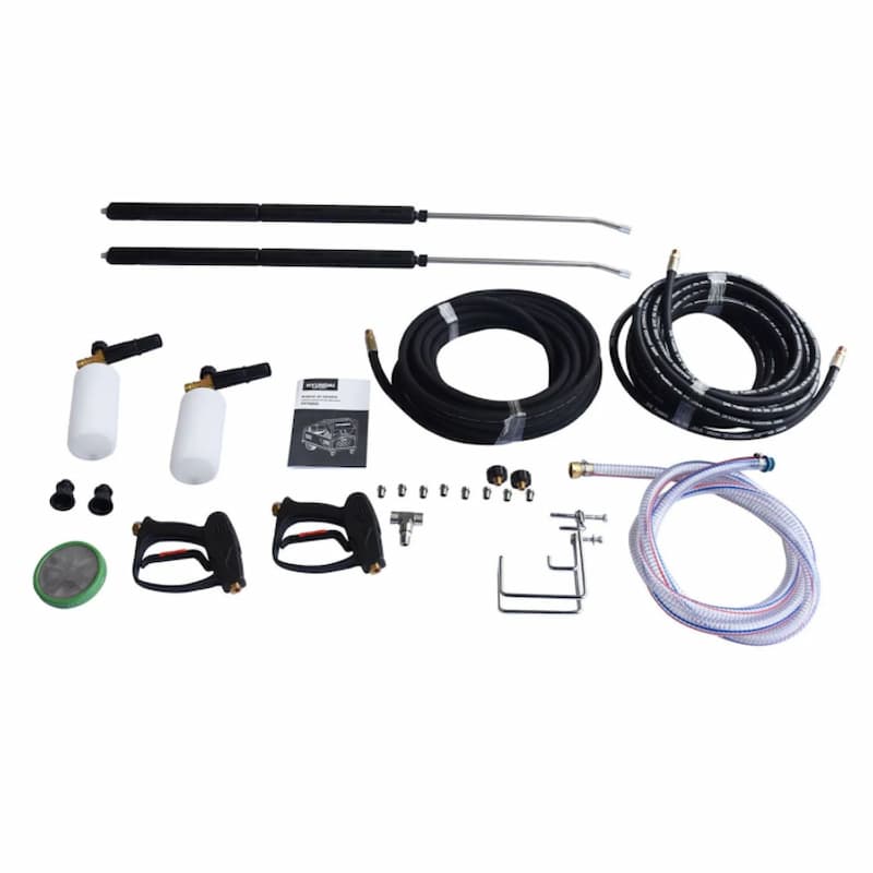 NUEVA Hidrolavadora eléctrica Hyundai HYP6000 Profesional con potencia de 20 hp. Incluye 2 mangueras de 15m, 2 pistolas, 1 bote para jabón y boquillas intercambiables.