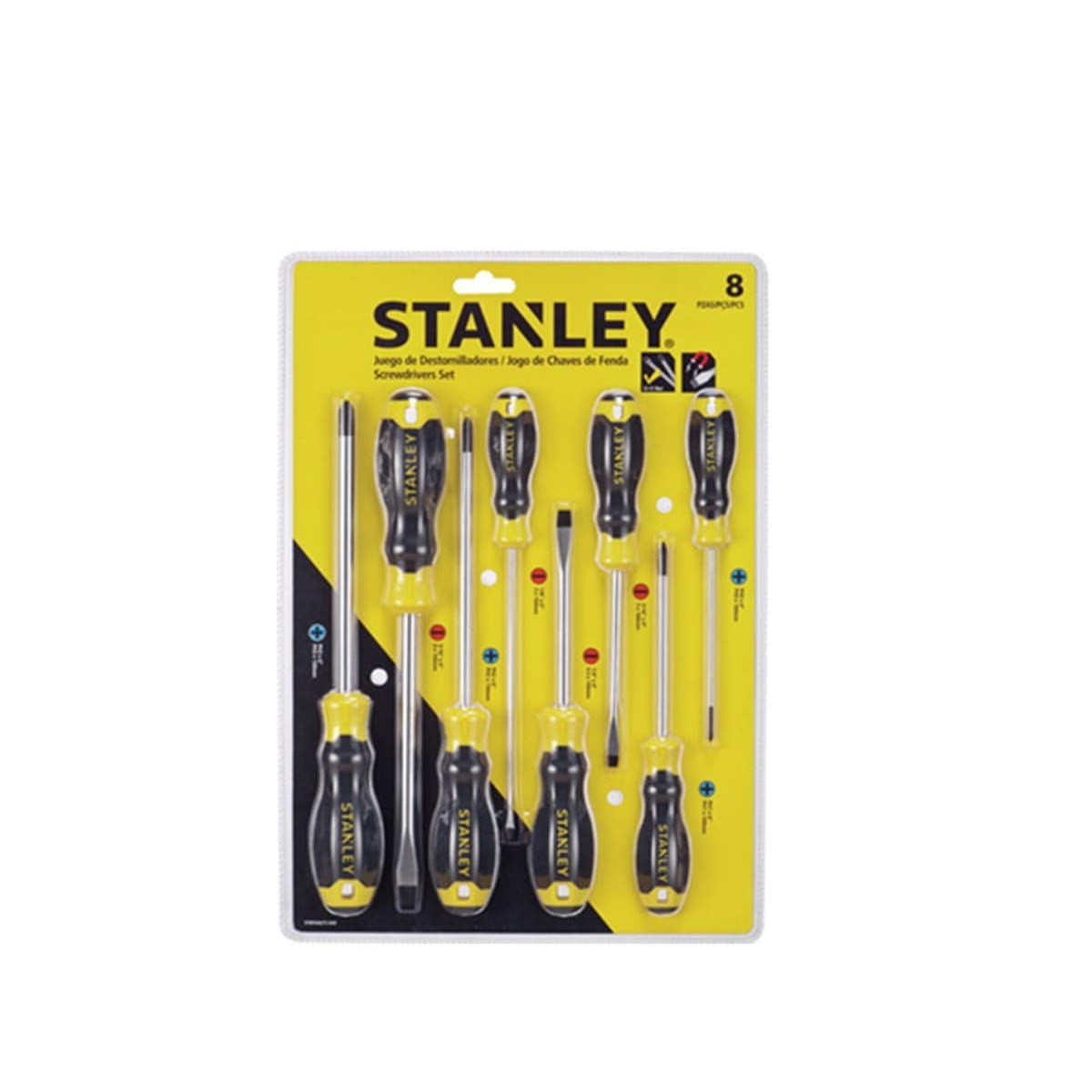 STMT66675-840 – JUEGO DE 8 DESTORNILLADORES CUSHIONGRIP, 4 PLANOS ESTANDAR Y 4 PHILLIPS. MARCA STANLEY