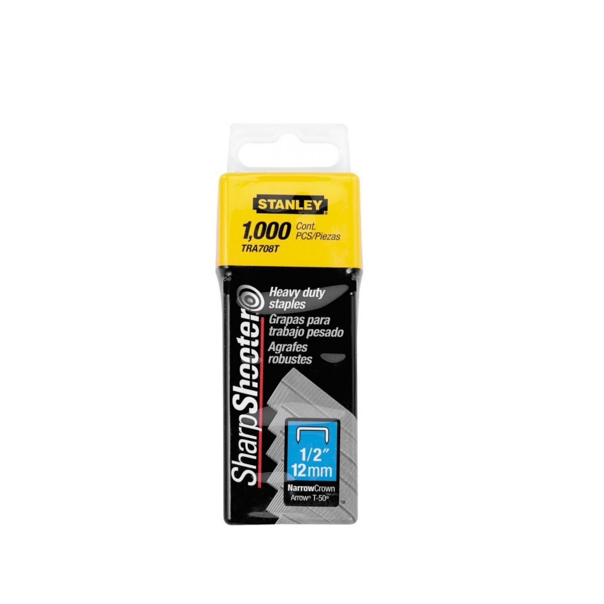 - Resistente empaque de plástico que reduce la ruptura de las grapas.