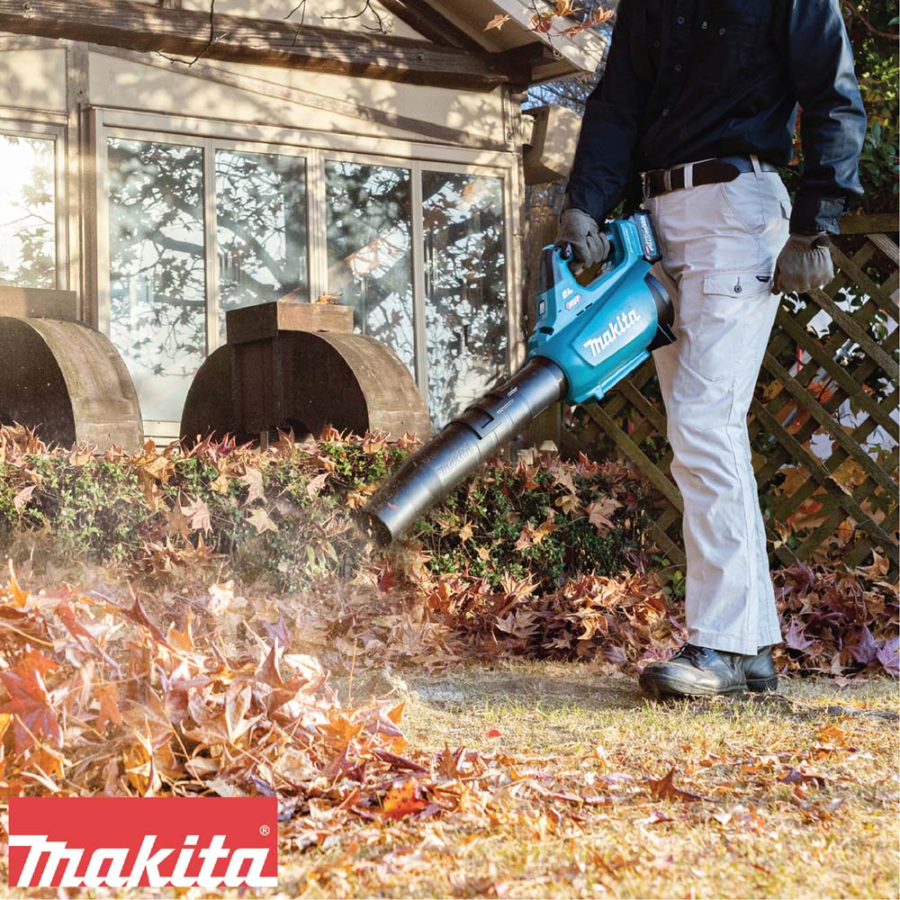 CARACTERISTICAS: – Soplador de velocidad variable inalámbrico sin escobillas 40Vmax XGT BL – Potente fuerza de soplado (Max 17N) – En el modo Boost, la fuerza de soplado máxima de 17 N siempre está disponible – La fuerza máxima de soplado se puede obtener fácilmente apretando completamente el gatillo (modo Boost) – Alta potencia y menor fatiga del usuario – Compacto y liviano para operación con una sola mano – Un flujo de aire más suave, que se logra rediseñando la posición del controlador y el puerto de entrada de aire, reduce el ruido y aumenta la fuerza de soplado. – Menos fatiga del usuario y flujo de aire más potente; La boquilla está diseñada de manera que su extremo apunte hacia abajo; Este pequeño cambio puede desplazar la fuerza de reacción hacia el lado del mango para minimizar la acción de inclinación de retorno de la máquina, reduciendo la fatiga del brazo del usuario. – Gatillo de control variable y palanca de control de crucero para ajustar la fuerza de soplado en el rango comúnmente utilizado – Botón de bloqueo operable desde cualquier lado del mango para operación continua