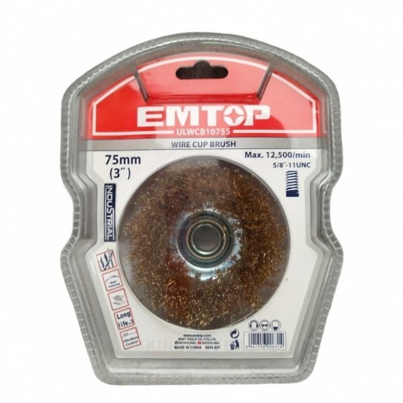 ULWCB10755 – CEPILLO DE ALAMBRE DE COPA, DIAMETRO 3 PULGADAS, EJE 5/8 PULGADAS.MARCA EMTOP