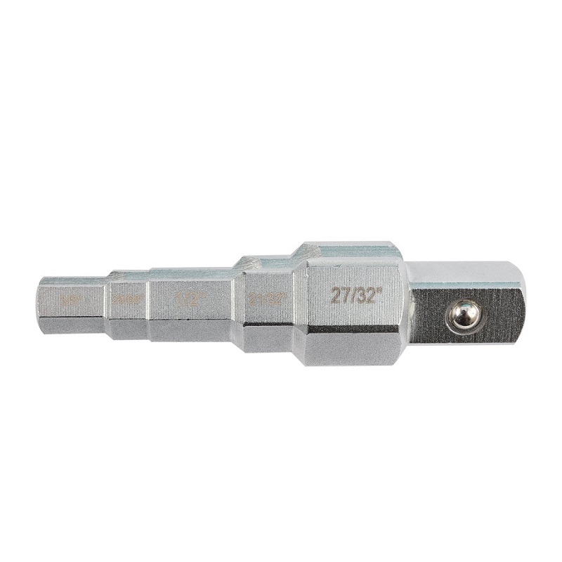 - Tamaños Incorporados: Ofrece múltiples medidas escalonadas en una sola pieza (ej. 3/8″, 1/2″, 21/32″, 27/32″).
